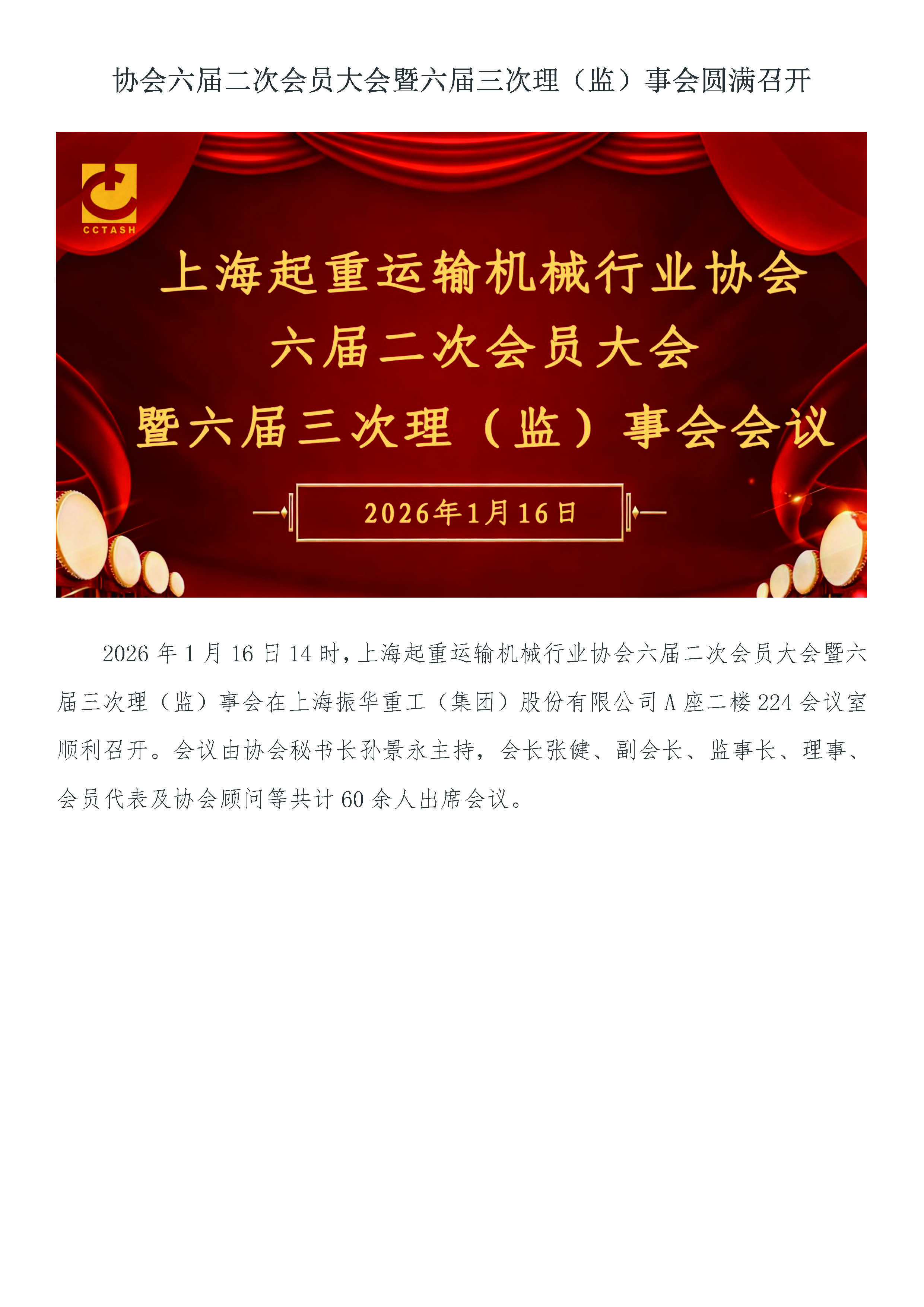 上海起重运输机械行业协会六届二次理事会圆满召开